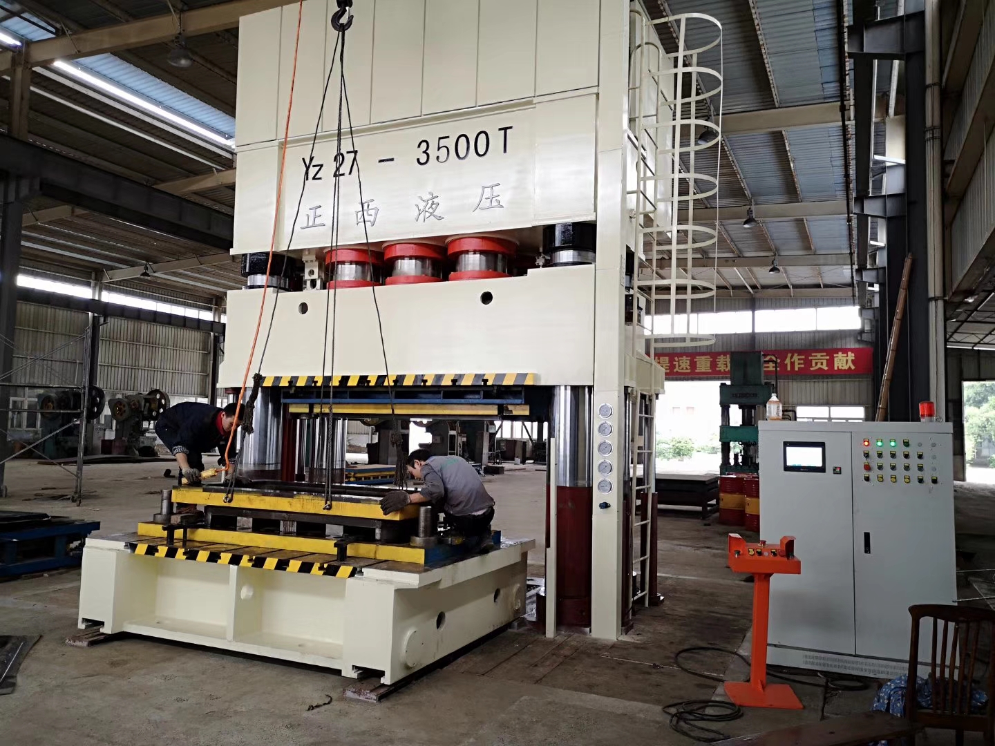 廣漢客戶的在我司訂購的3500T四柱液壓機交貨啦,送至客戶工廠安裝調(diào)試。